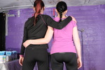 Scissors - Paper - Stone is the game, and the winner of each round gets to do whatever she likes to the looser. Which means Lucia soon has cream and custard flowing down inside her skin-tight running pants, but before long Honeysuckle's leggings suffer a similar sticky fate.