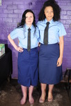 Friday and Honeysuckle are looking very smart in their new skirt-based Saturation Hall staff uniforms. While our people do have a lot of freedom to chose what to wear, several had said they'd actually like a smart outfit, based on a nice traditional knee-length skirt, to wear when the occasion requires something smarter than overalls or a boilersuit, but not quite the kind of formal event that needs a gungable gown. Oh, did I say gungeable? Well of course any outfit intended for our people to wear has to prove itself just as comfortable and practical when drenched in goo as it is when clean and dry. Which is where Friday and Honeysuckle come in.