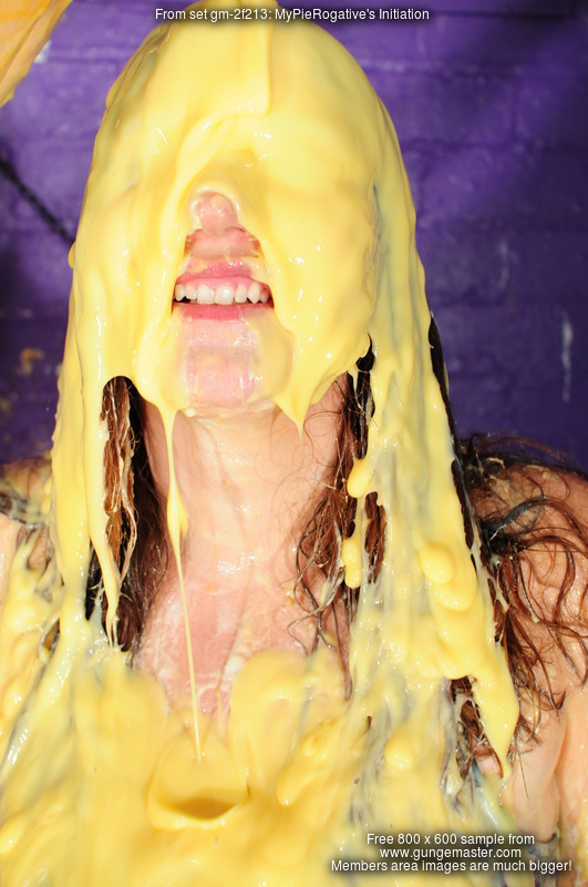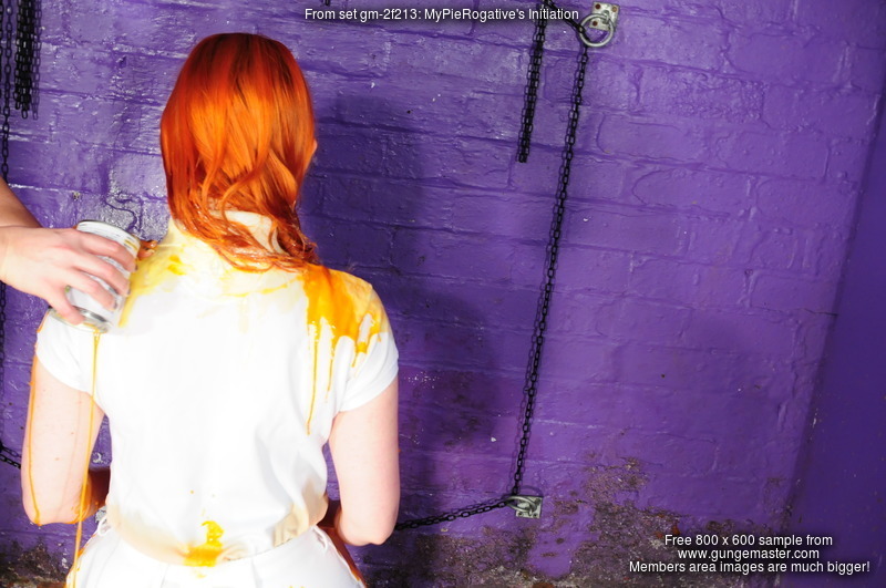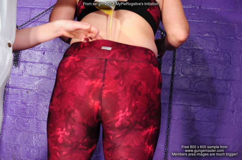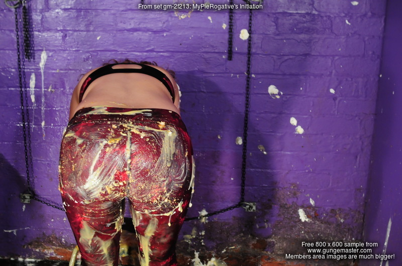First came the initiation. A full can of custard poured into the front of Maria's running trousers, slightly off centre so most of it went down her right leg, wetting and soaking through the fabric, and then a second full can, poured straigh in dead centre at down the back of her trousers, a visible wetting and staining showing through the tight material as the custard flowed down between her cheeks, collected betwen her legs, and flowed evenly down each inside leg.