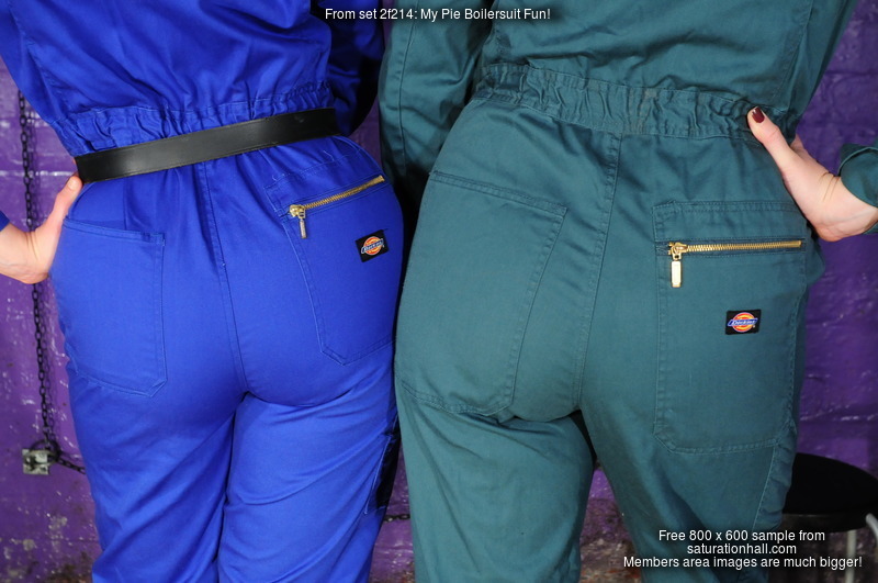 Rosemary loves wearing boilersuits. So much so that during her first Christmas at the hall she was given one as a present for personal use when she's not wearing one of the many work ones we provide for each staff member. And of course Maria had heard all about our taste for women in workwear jumpsuits before she came to visit, and was keen to try one on. This is what followed.