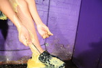 Friday completely fills and covers her suit in mixed mess, and also gives herself a thorough messy shampoo as well.