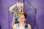 Tomato soup, custard, spaghetti hoops, baked beans - they use it all on each other. Teena has her dress filled, covered, and at one point has one of her boots unzipped, filled with spaghetti hoops and zipped back up again. Friday has various messes pouured into her skirt, front and back, down her top, again front and back, and both women end up totally covered and drenched in mess. Both have their hair well gunged and faces covered at the end too.