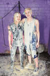 An all-out gunge frenzy follows, with pies to faces, bottoms, chests, and heads, more clothes filling, a complete messy shampoo for both girls, ending in both of them monumentally messed up from head to toe, drenched in mess, and posing for the camera, messy bottoms pressed together.