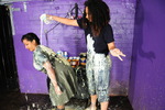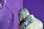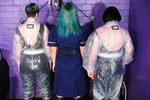 Our blue-haired artist Daisy invited her blue-haired friend Virginia to the Hall, so she could experience the joys of having her favourite running gear filled with mess while she is wearing it. Virginia had never been gunged before so you get to see her reactions as the mess flows in.