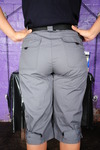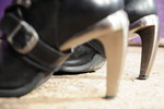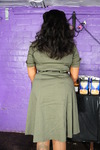 Playing today we have Friday, dressed in long grey shorts, a dark blue t-shirt, and clear ankle boots, and Teena, wearing her own military-green dress, with stockings and a suspender belt, and army green wellies.