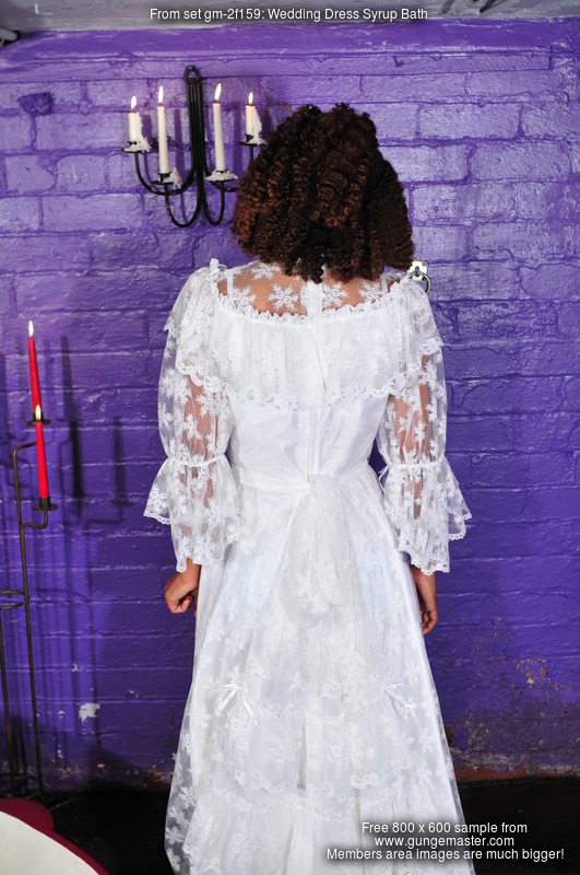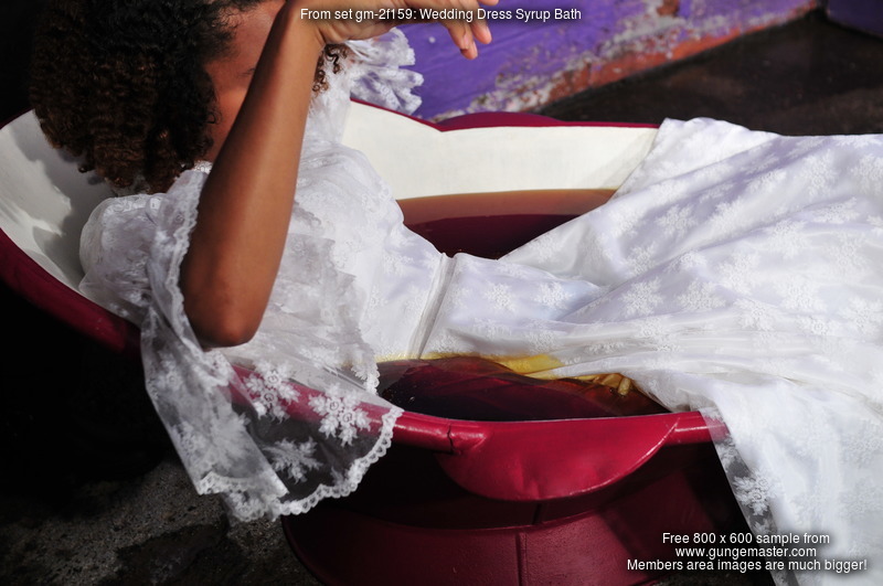 gm-2f159: "Friday wears a beautiful white wedding gown into a bath of golden syrup!" Added 2016-08-10, 448 photos, 1.6G disk space