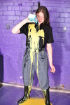 Veronica wears a dark blue knee length uniform skirt with pockets, a pale blue blouse, and green wellies, while Eliza wears a dark blue hospital cleaner's dress, and white lace-up plimsolls. They are supposed to be cleaning up the dungeon after their previous epic waterproofs set, however they decide just to totally gunge each other all over again for the fun of it.