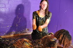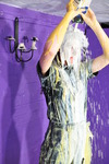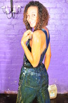 Friday comes to rest with the underside and both sides of the dress submerged, just the front still clean and pristibe. And then Evelyne brings over a fresh gallon bottle of syrup, and starts pouring it all over the remaining clean areas of the dress, while Friday plunges her arms into the thick, rich liquid and enjoys creating flows and films between her arms.