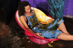 Now it's chastity's turn to sit again, and Friday carefully and comprehensively fills Chastity's dress, pouring custard and other gunges down inside the front until damp stains are appearing from inside and Chastity is sitting in a pool of mess inside her dress.