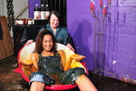 Veronica and Eliza cover each other's uniforms with food