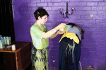 Of course they both still have clean hair. This doesn't last much longer as they each take a full carton of custard, stand together, and give each other thorough custard shampoos.
