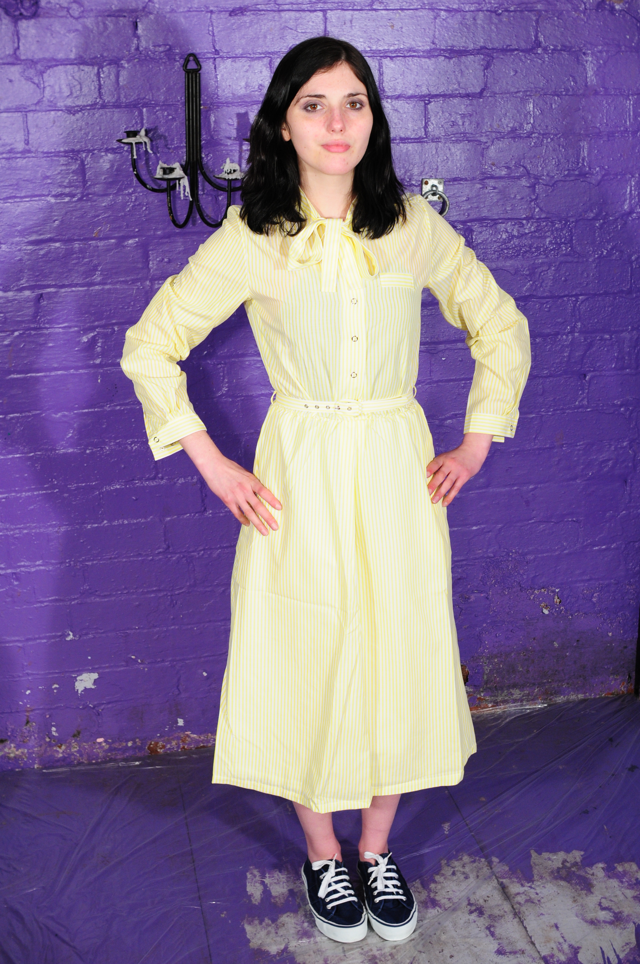 Lady Jasmine completely saturates a womens workwear outfit in custard