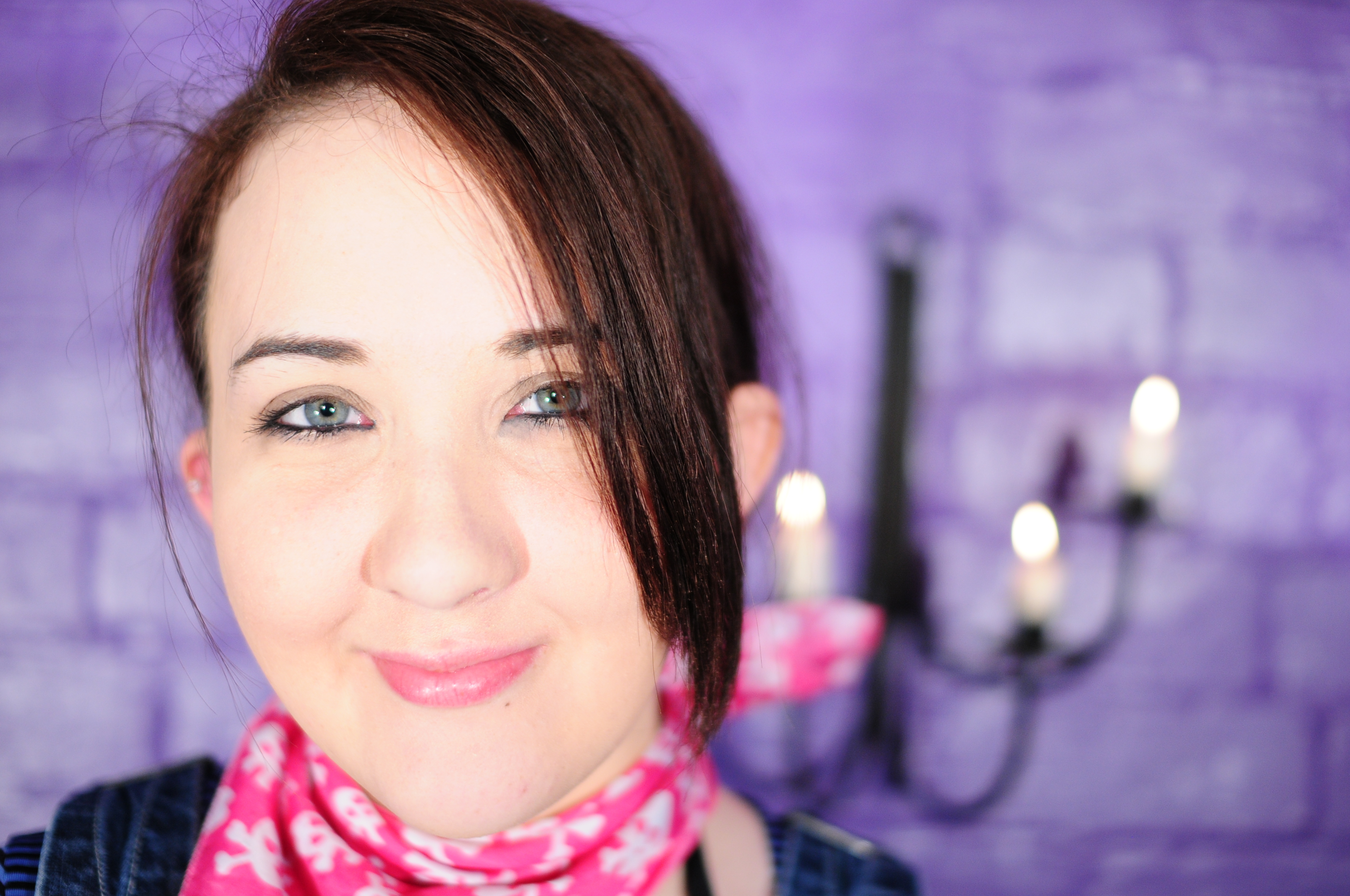Lady Rose is dressed in really cute short blue denim dungarees, long-sleeve blue striped t-shirt, a pink and white "pirate" neckerchief, and "Tickled Pink" lace-up pink wellies, and is going to totally cover herself with custard and syrup!