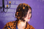 She goes on to thorougly drench her entire outfit in yellow mess, finally relaxing only when every last inch has been thoroughly slimed.