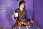 Lady Jasmine is dressed for the fetish ball, in a mesh-skirted, PVC corsetted strapless dress, boots, and her PVC bondage collar and cuffs. And she's feeling very creamy!