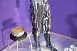 Aha, the lovely Maude, today dressed in very shiny black satin trousers, black sleeveless dance leotard, and very sexy heeled leather boots, having a lot of fun with savoury clothes filling.