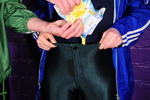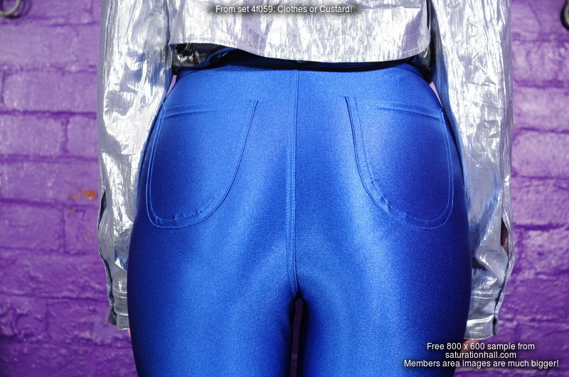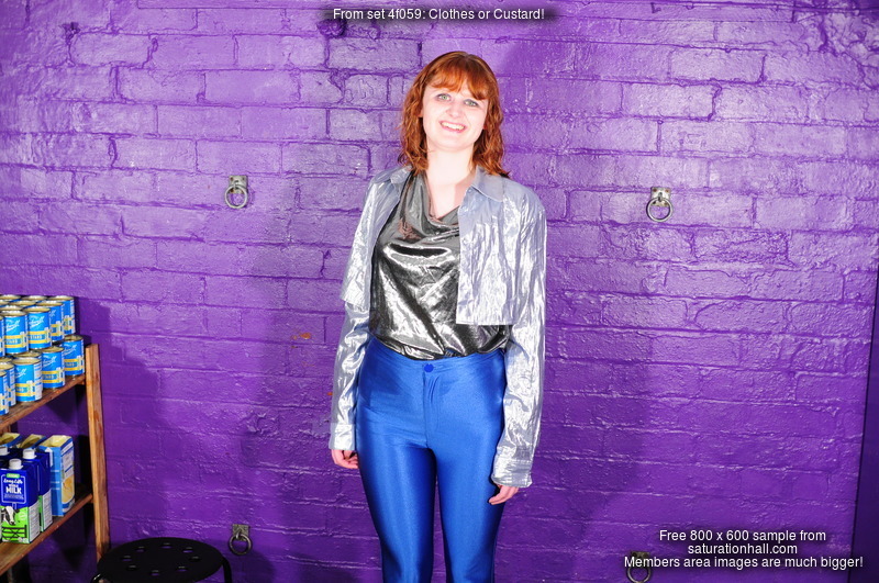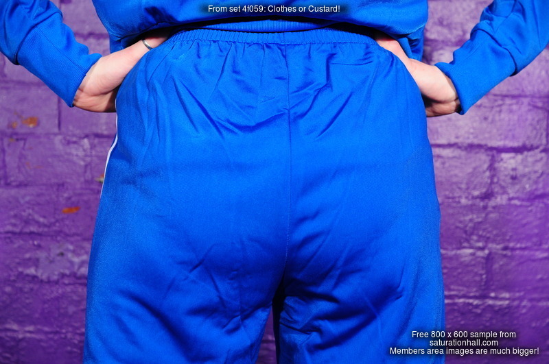 They take interstingly different approaches. Lucia choses to put quite a lot of her very sexy shiny black outfit back on before she starts to get messy. Charity on the other hand chose to have a fair bit of custard poured into her swimsuit before she starts putting her tracksuit back on. And Abigail enjoys having her panties nicely filled before she pulls her disco pants back on, with interesting effects when she then sits down again.