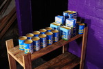 Initially, Charity is seated, sitting in one of our silver trays, clean and dry to start with of course, while Honeysuckle stands next to her. Honeysuckle starts by pouring a full can of custard inside Charity's shorts, but then she hands a full can to Charity, who pours out handfuils and spreads them all over Honeysuckle's shorts, including underneath, while the custard from inside Charity's own shorts leaks out and collects in the tray she's sitting in.